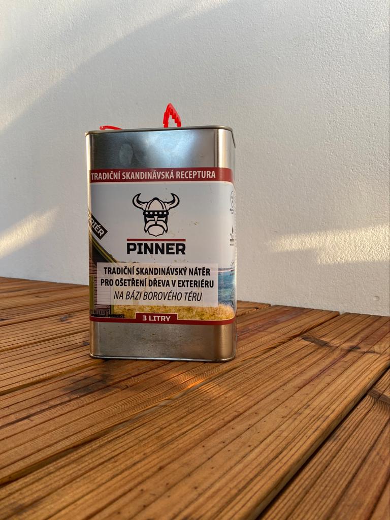 Ošetřování borovým térem se od běžných moderních nátěrů liší. PINNER obsahuje látky dřevu přirozené!