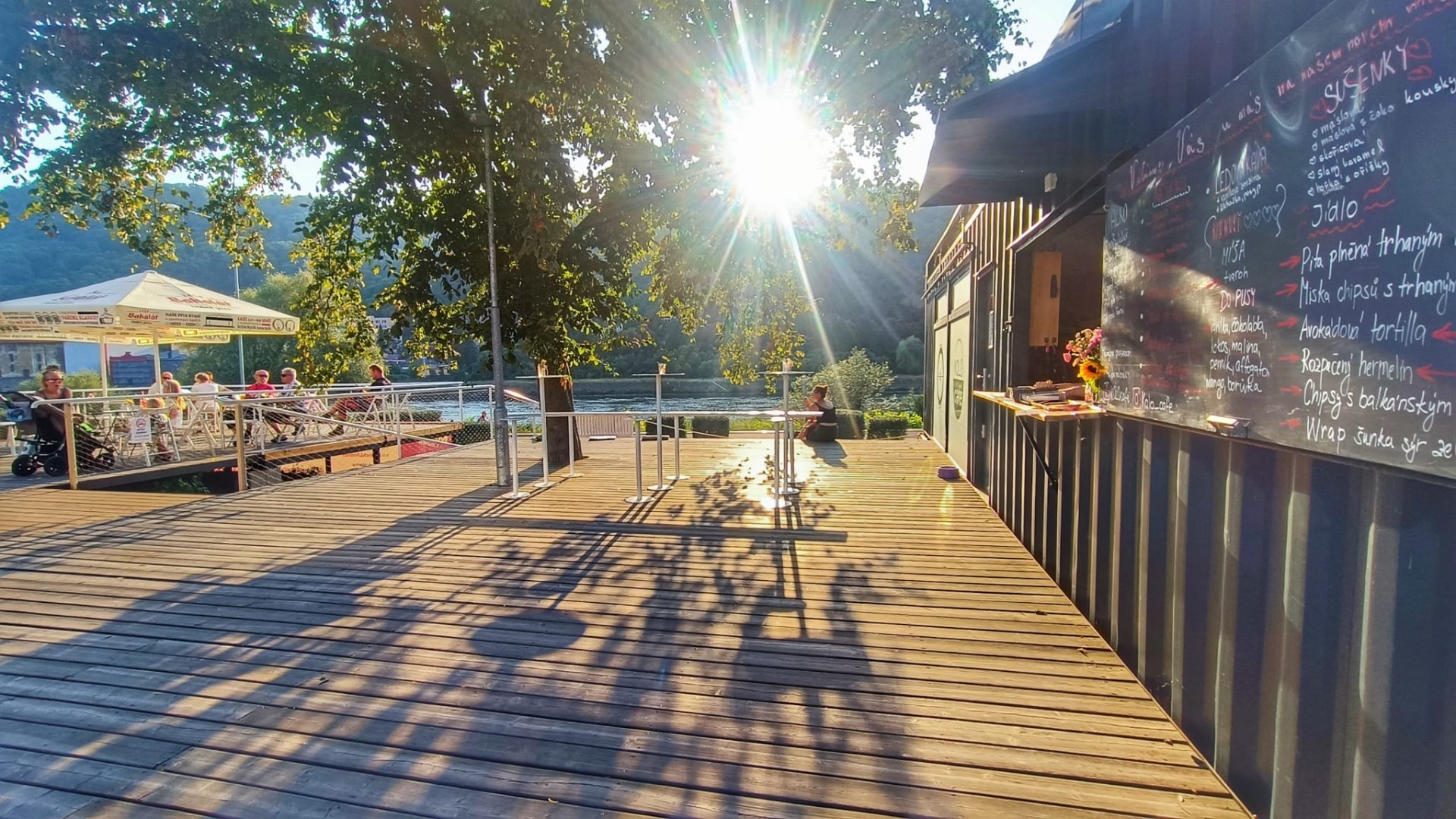 Terasy kavárny KOLOcafé ošetřené Norským naturem.